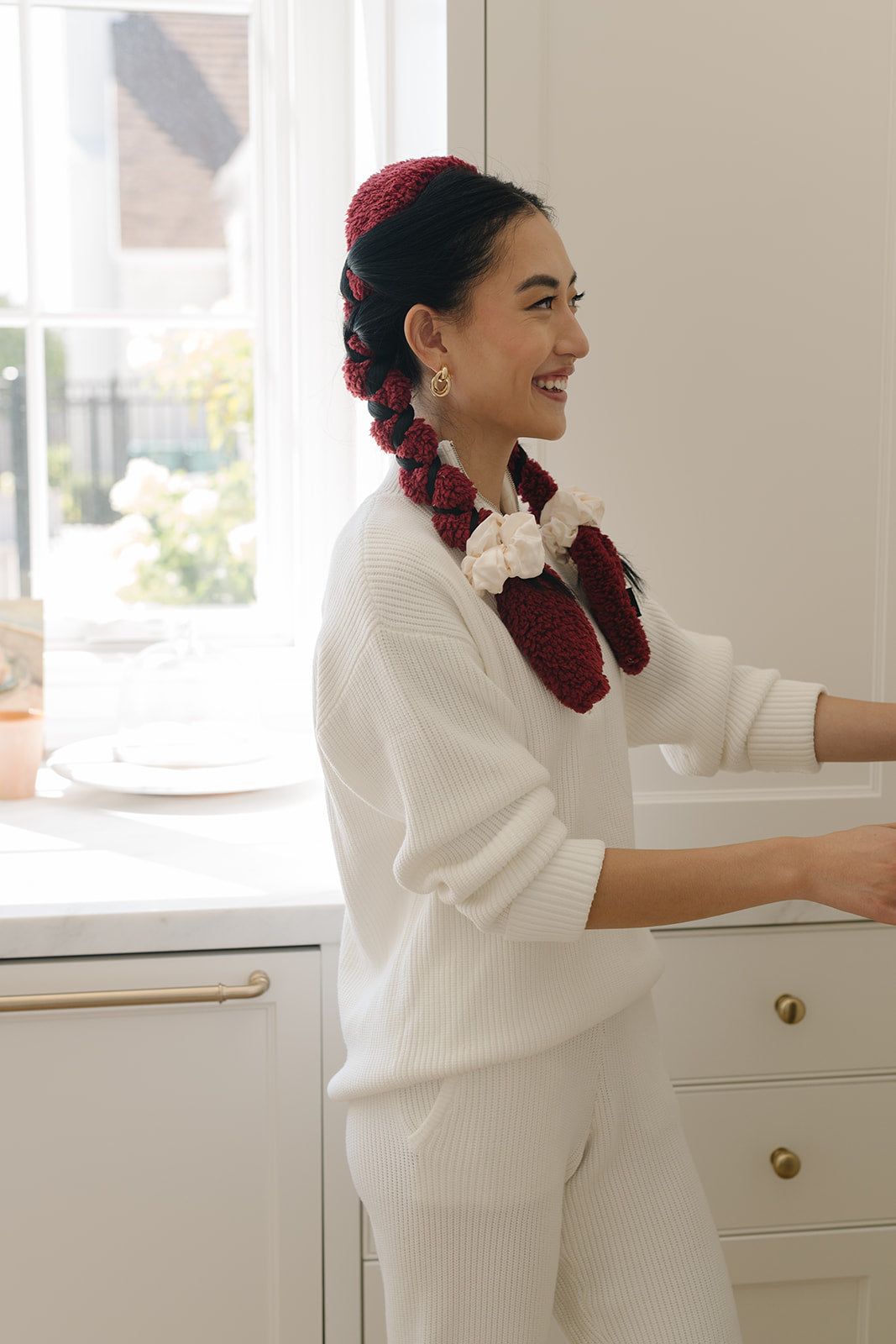 The Coziest curlband! It's fluffy, soft, and so comfy to sleep on! Creates effortlessly bouncy, beautiful, healthy curls! Scrunchies sold separately.